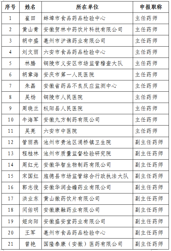 2025年度全省药学专业高级职称评审通过人员名单公示